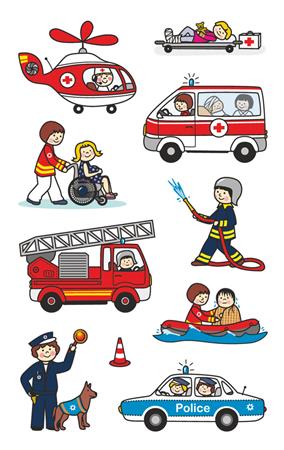 Matrica, papír, 3 ív, 76x120 mm, AVERY ZWECKFORM, "Z-Design No.54137", mentősök, rendőrök, tűzoltók