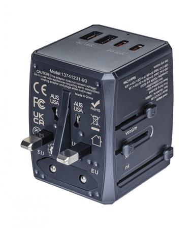 Utazóadapter, univerzális, gyorstöltő, DONAU "Travel 904", fekete